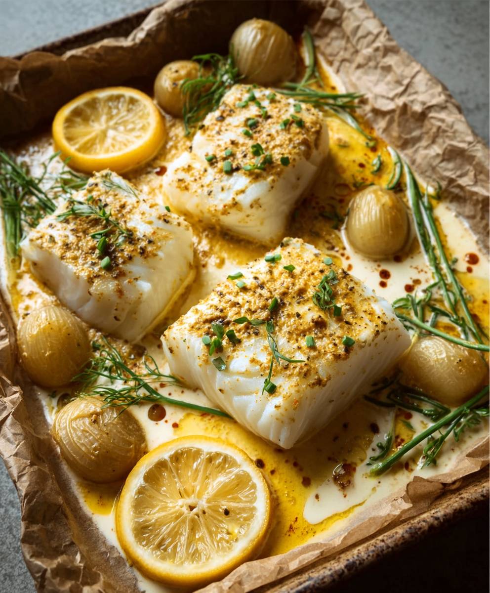 Cabillaud au four moutarde crème : Recette facile et savoureuse